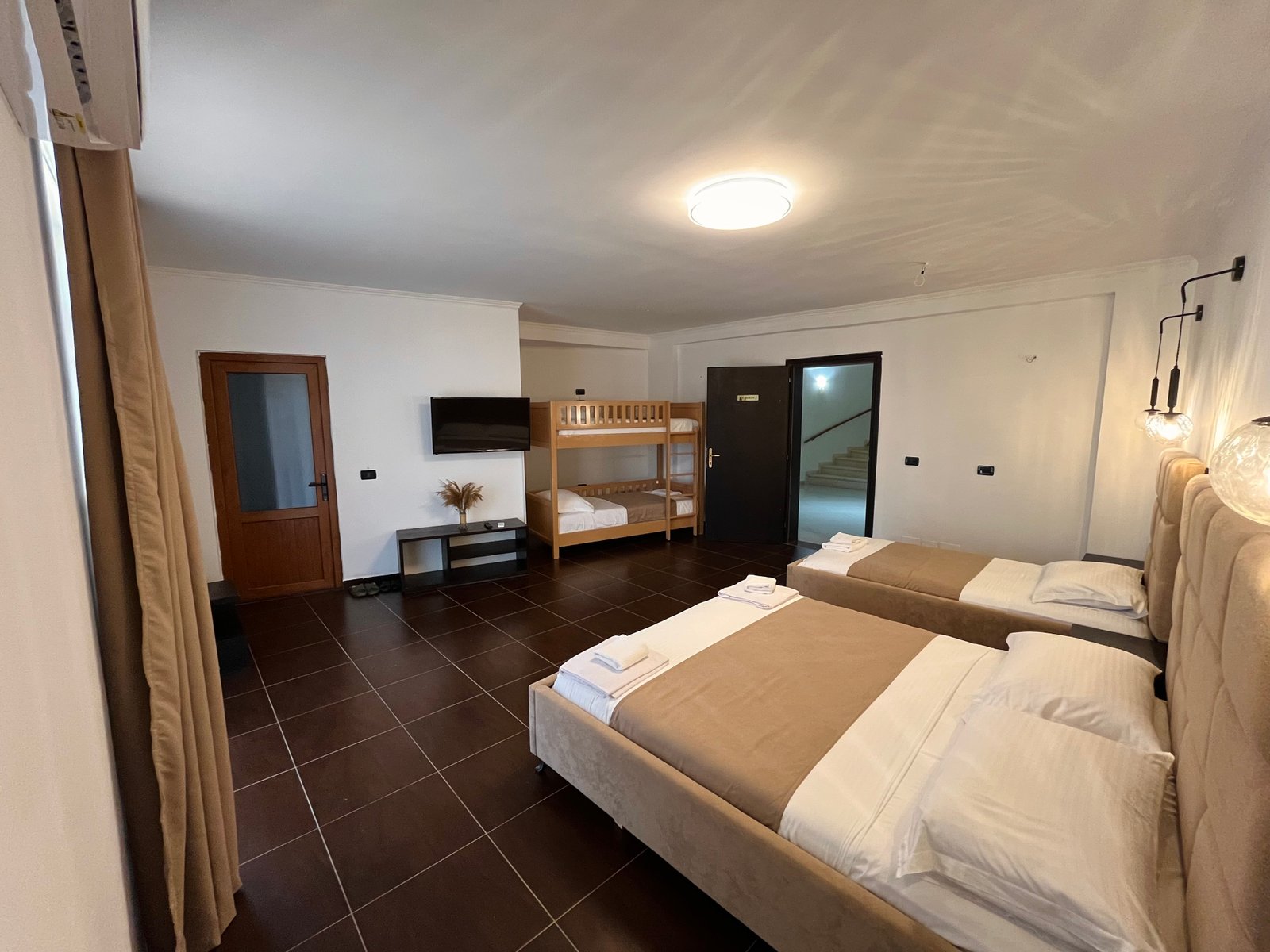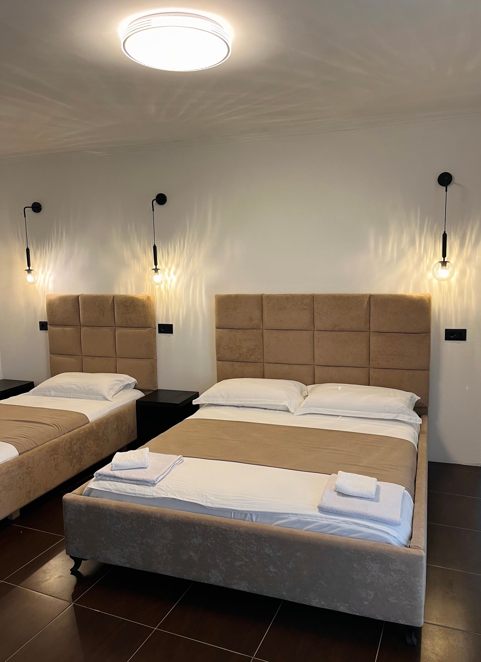 Triple Room Tripple RoomsIdeal for small groups or families, this room offers three comfortable beds, functional space, and all the essentials for a pleasant stay. € 120 per night Details Family Room Family RoomsSpacious and thoughtfully designed, our family room provides comfort for everyone with multiple beds, generous space, and a welcoming environment for all ages. € 135 per night Details